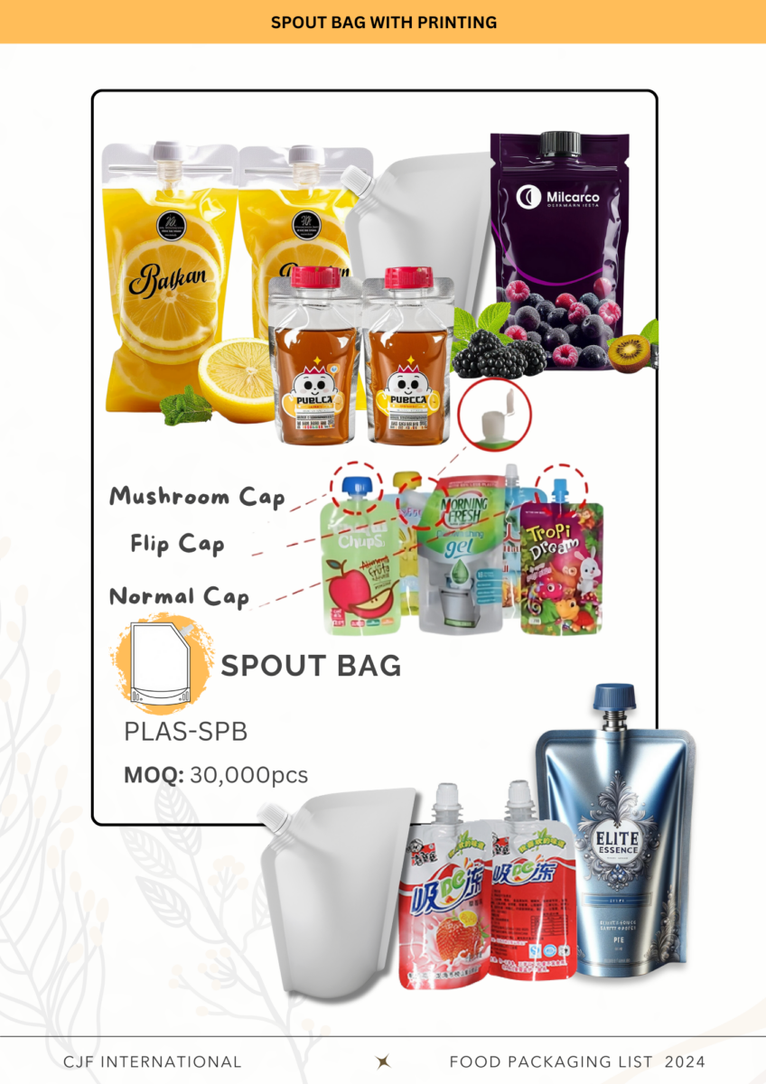 Spout Bag: These bags come with a spout, making them perfect for liquids or fine-grained products.